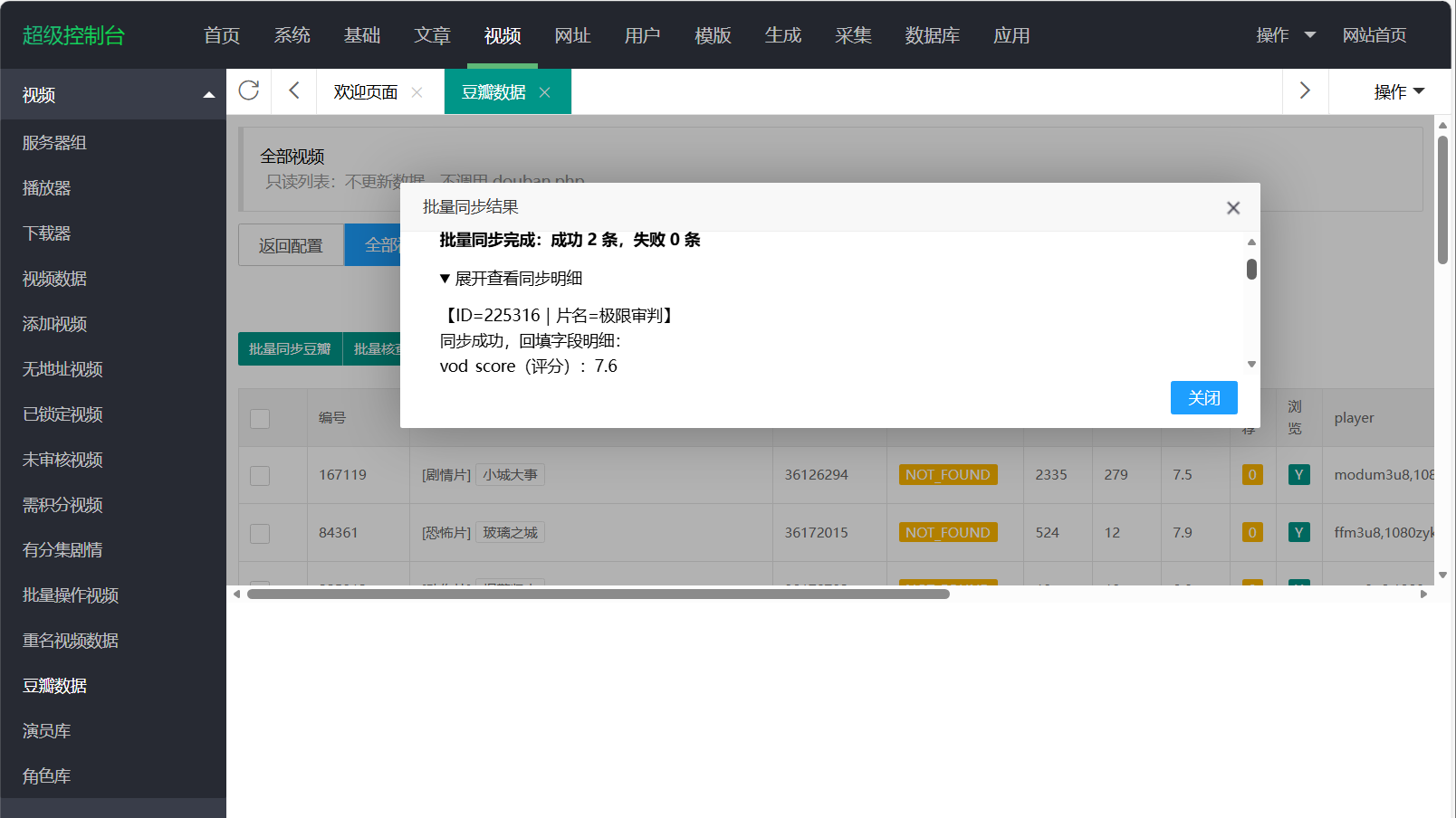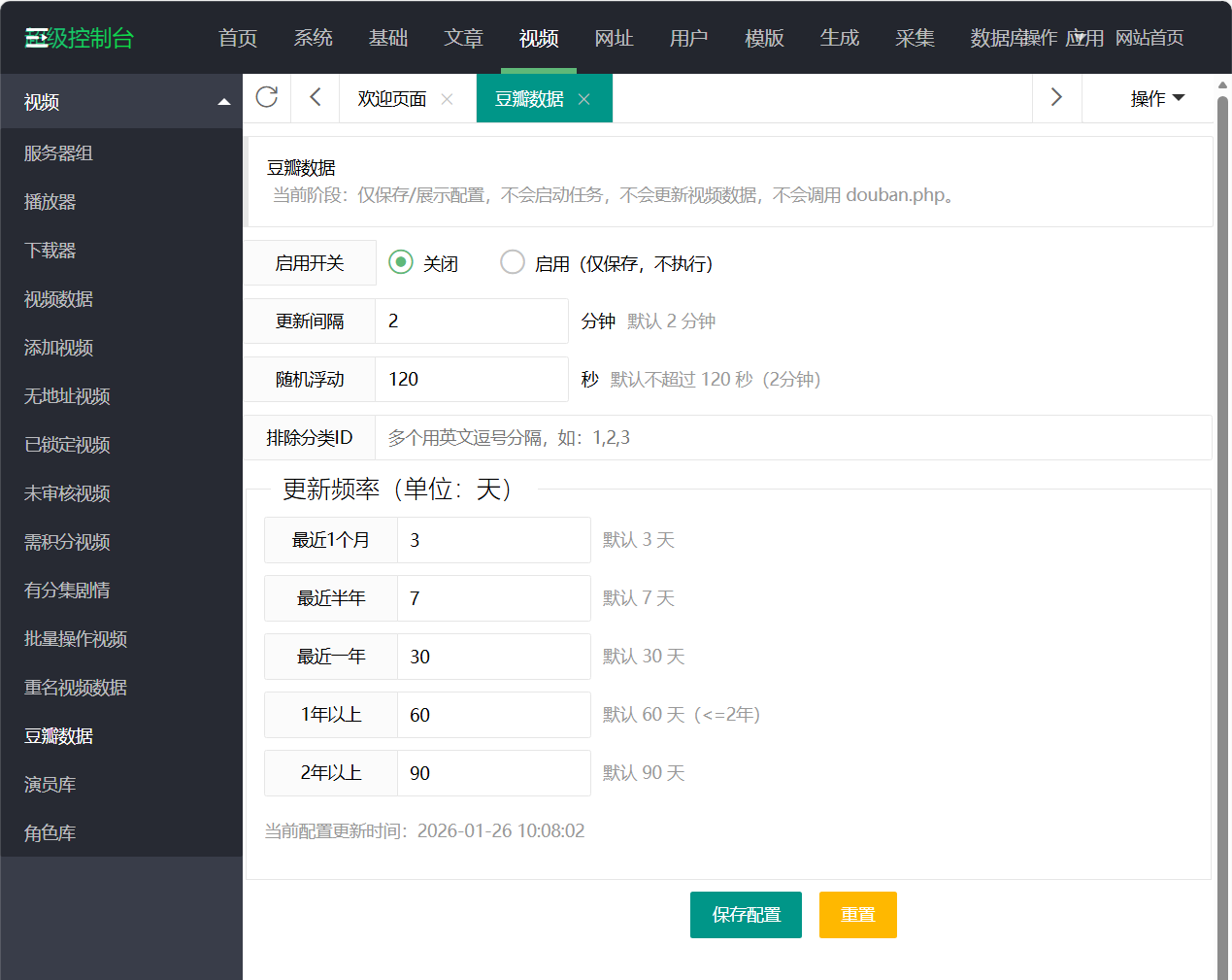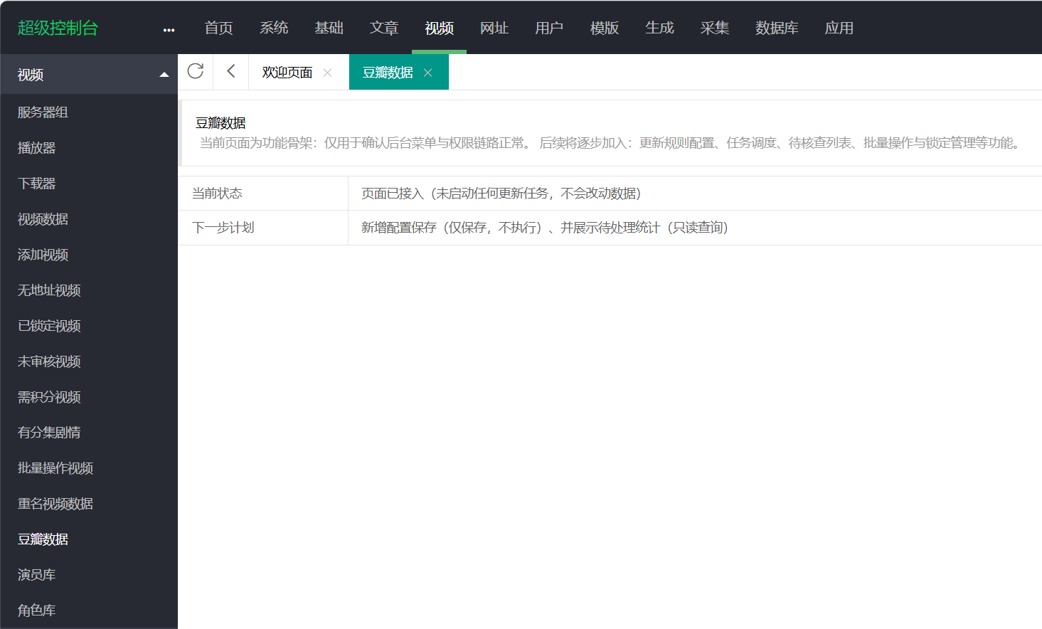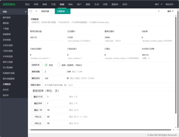 2.1 新增菜单:视频 → 豆瓣数据
