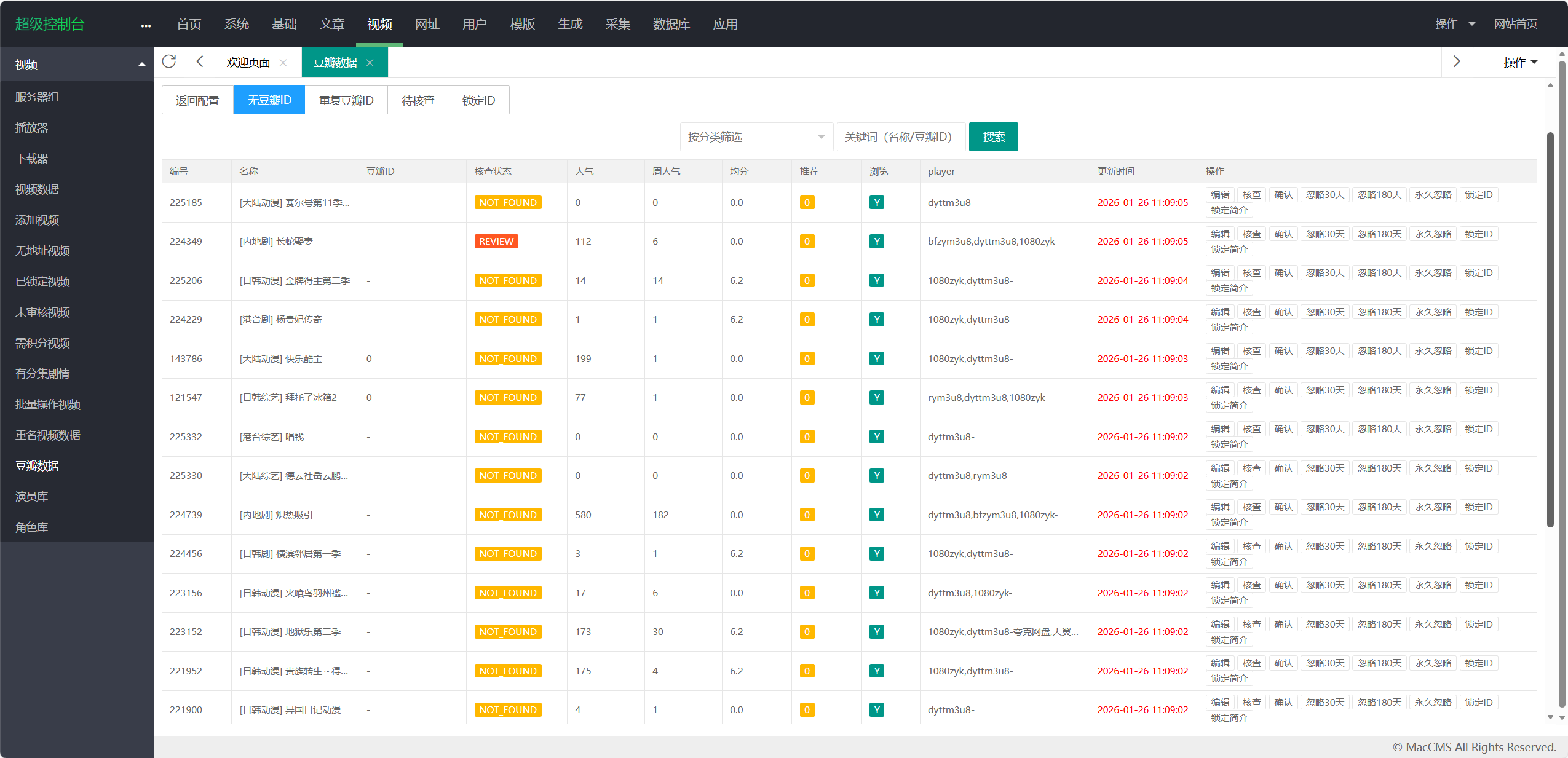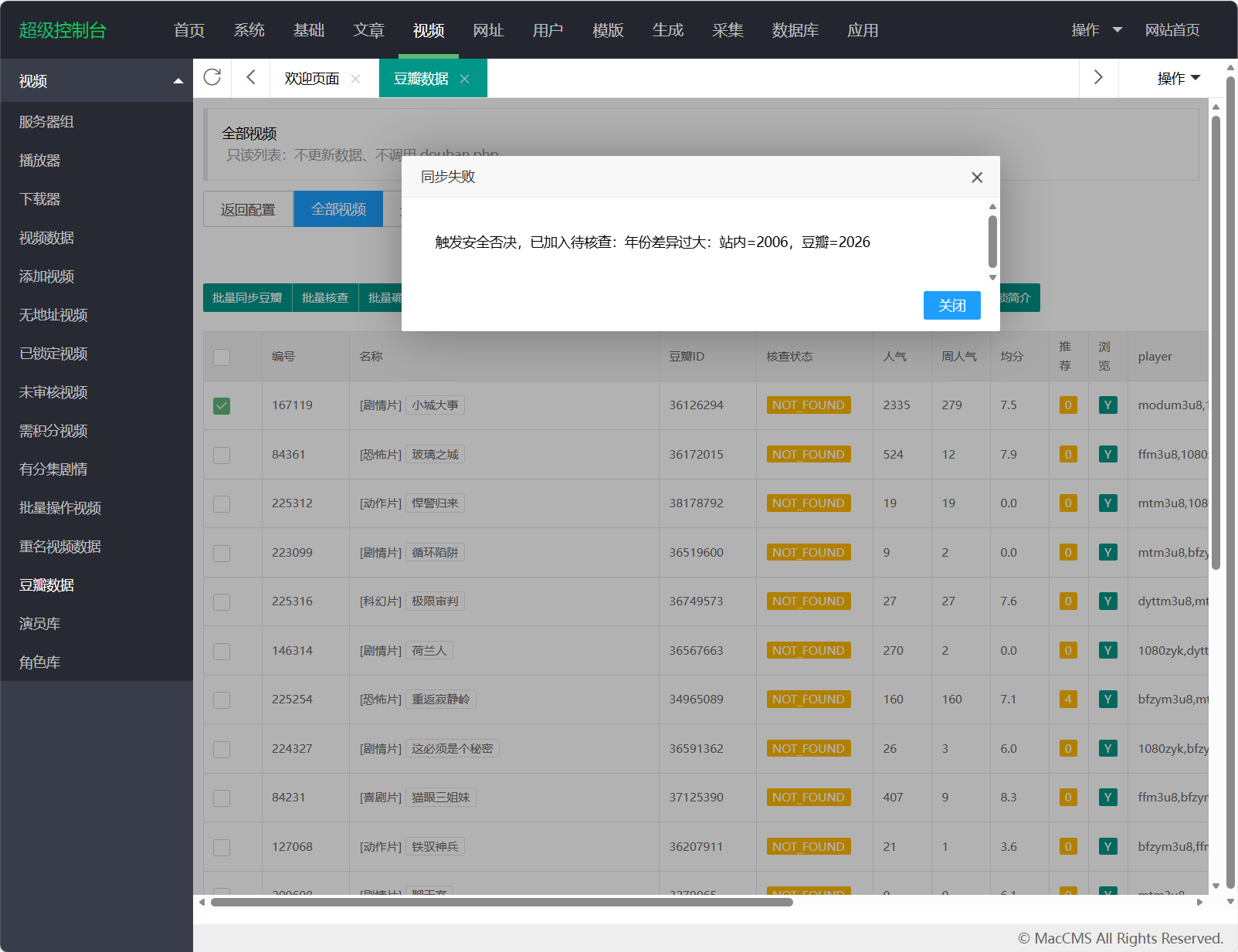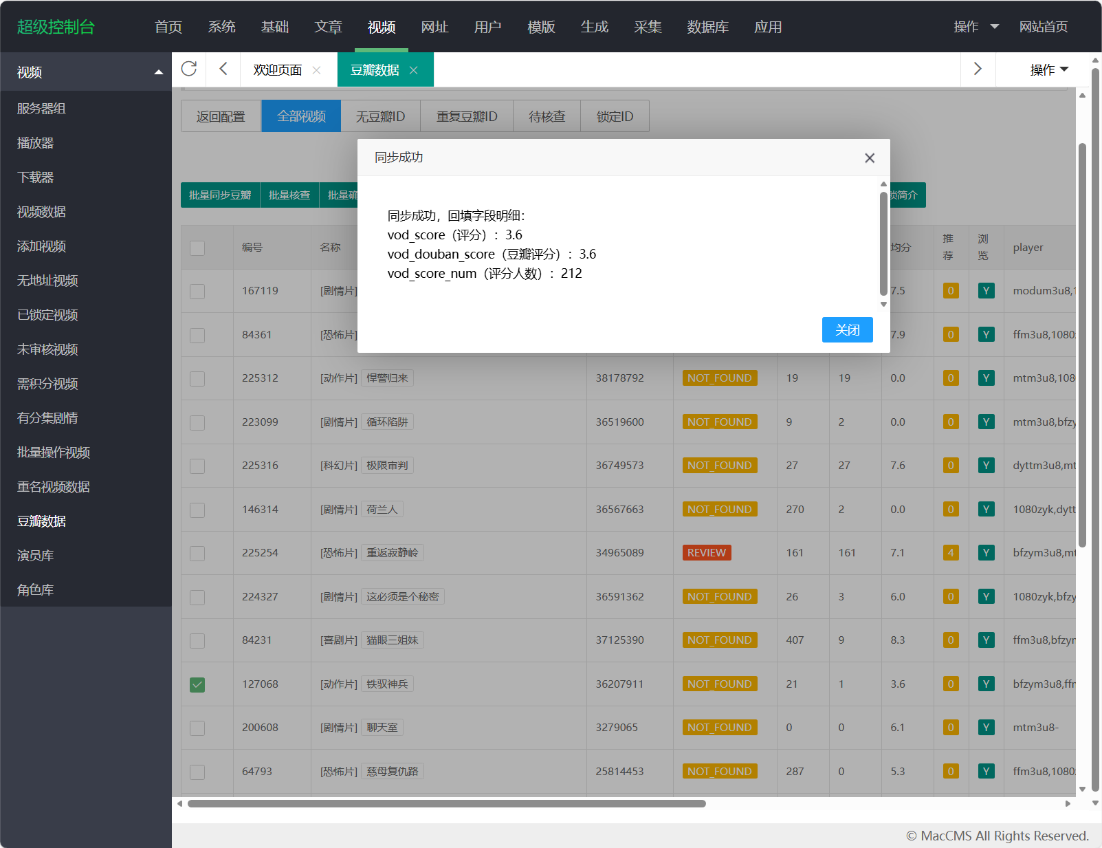 - 在苹果CMS后台“视频”菜单新增页面:豆瓣数据。