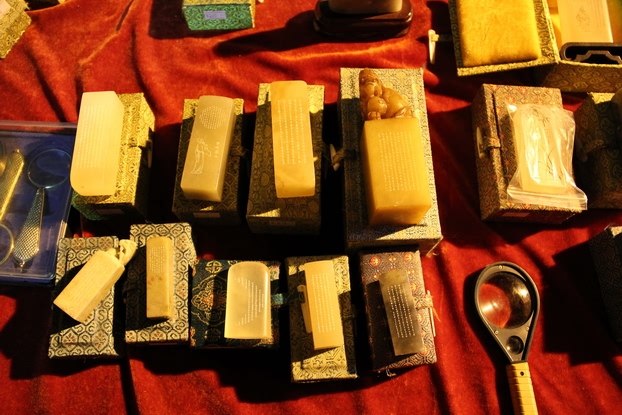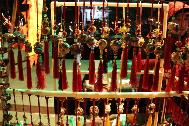 中华一线,工艺出于传统中国结一类,是山东济南的独家工艺。招财蛙,心心相印设计制作工艺已申请国家专利。作品中含多味中药,有清脑安神之功效。